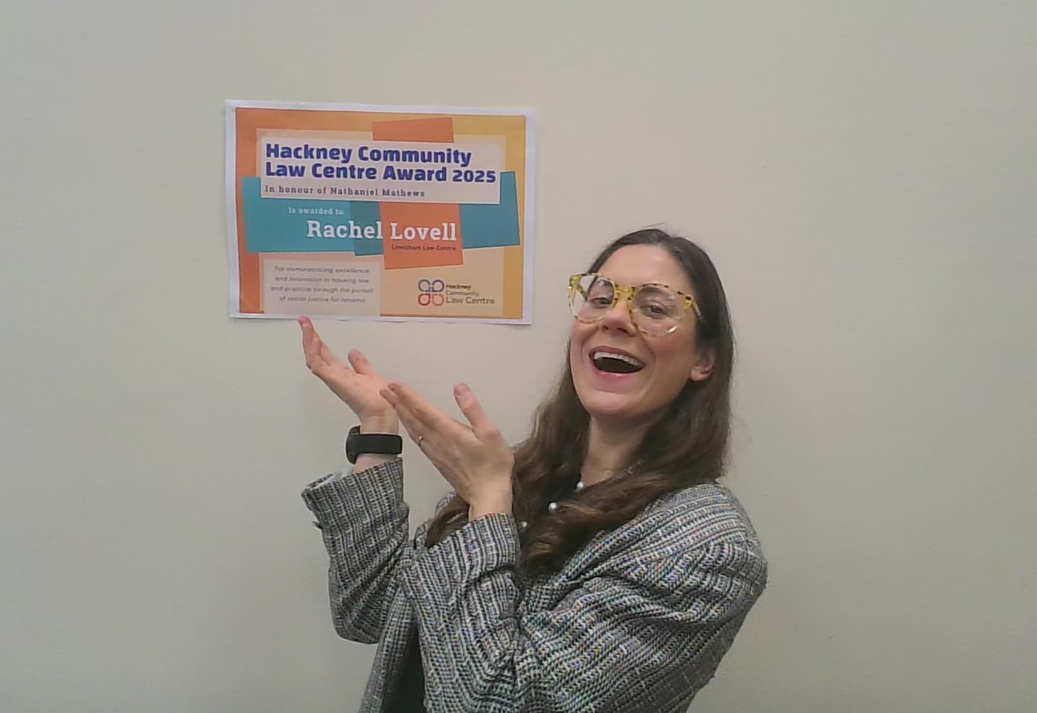At the Law Centres Network AGM on Friday, 21st November, Lovell was presented with the Nathaniel Mathews Award for excellence or innovation in Law Centre housing work. The award is an initiative of Hackney Community Law Centre, and honours the memory of their much-revered late housing lawyer, who passed away in 2022. The Nathaniel Mathews Award was first launched in 2024 and seeks to uphold the values and excellence that Mathews embodied.