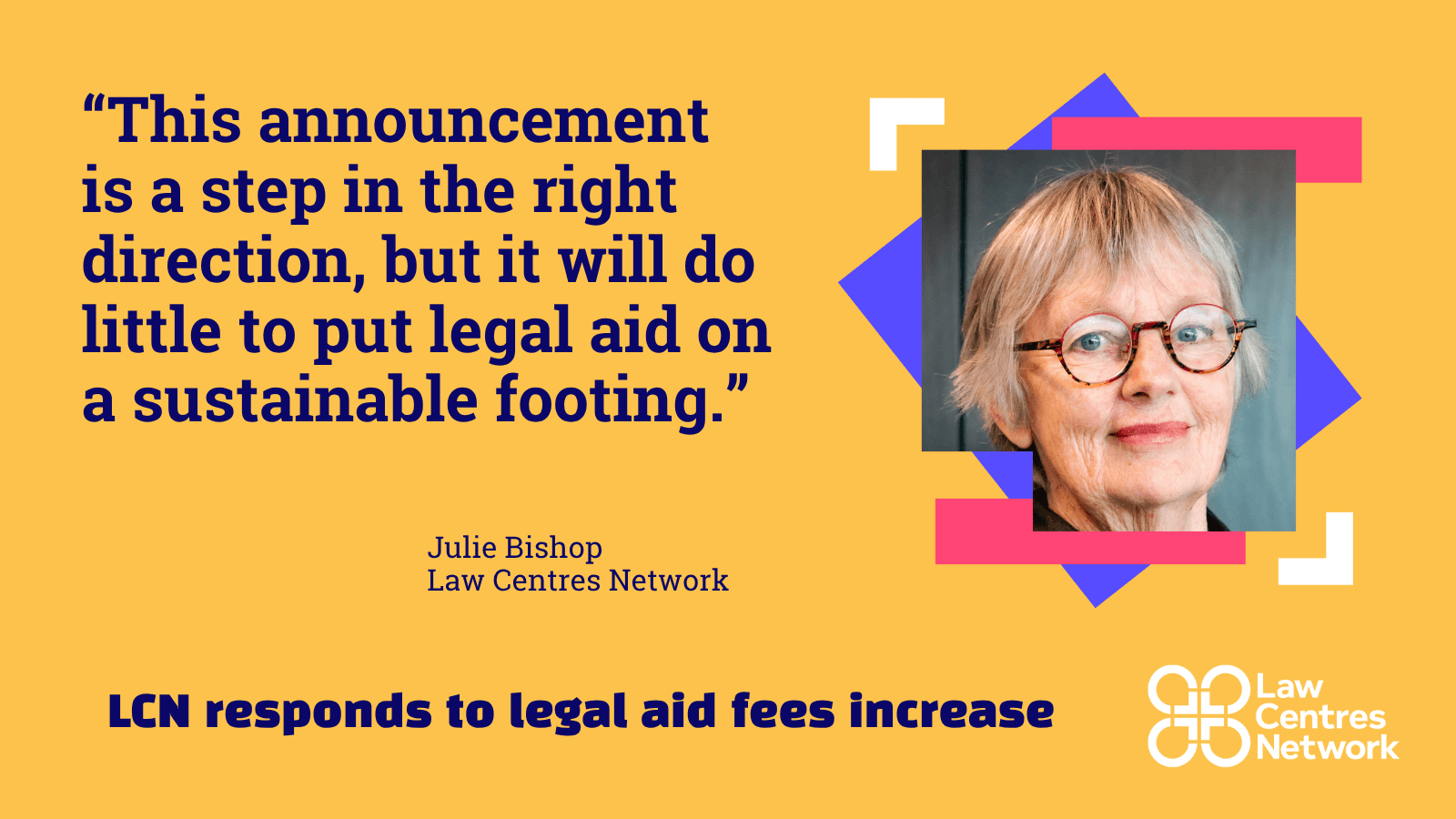 This is the first increase in legal aid fees for almost three decades—the last came in 1996. LCN and its sector partners are concerned that the modest increase does not go far enough. Some housing and immigration legal aid work will only see a 10% fee increase, which lags behind inflation.